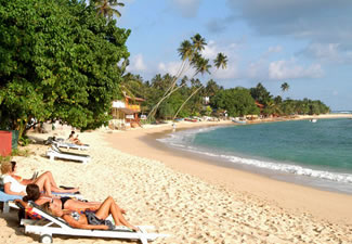 Unawatuna is a coastal town in Galle district of Sri Lanka. Unawatuna is a major tourist attraction in Sri Lanka and famous for its beautiful beach and corals. It is a suburb of Galle, about 5 kilometres (3.1 mi) southeast to the city center and approximately 108 kilometres (67 mi) south of Colombo. Unawatuna is situated at an elevation of 5 metres (16 ft) above the sea level. Unawatuna traces its roots to the great epic Ramayana. In the epic, the monkey-warrior Hanuman was sent back to India to fetch the four medicinal herbs by Jambavan namely, mritasanjeevani, vishalyakarani, suvarnakarani, and sandhani from the Himalayas in order to heal Lakshman who was wounded trying to save the abducted Princess Sita from the demon king Ravana. Hanuman failed to identify these herbs, so he lifted the entire mountain and carried it to the battlefield to try to save Lakshman, but in the process, a chunk of it "fell-down" in the location of the present day Unawatuna, the name of the village derives from "Una-watuna" meaning "fell down". |